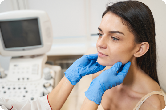 На первой консультации доктор дает детальную оценку состояния здоровья пациента. Соберет подробную информацию, проведет физикальный осмотр и назначит исследования с учетом текущих симптомов. Важную роль в диагностике играет осмотр кожных покровов и пальпация области щитовидной железы.